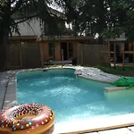 Chalet 2 En Bois Avec Acces Piscine Nîmes med 1 sovrum, som ligger inom 2 km från Musée des Beaux Arts, har en privat pool för gästerna. Villan, som har en terrass, ligger ungefär 25 minuters gångavstånd från Nîmes Cathedral.